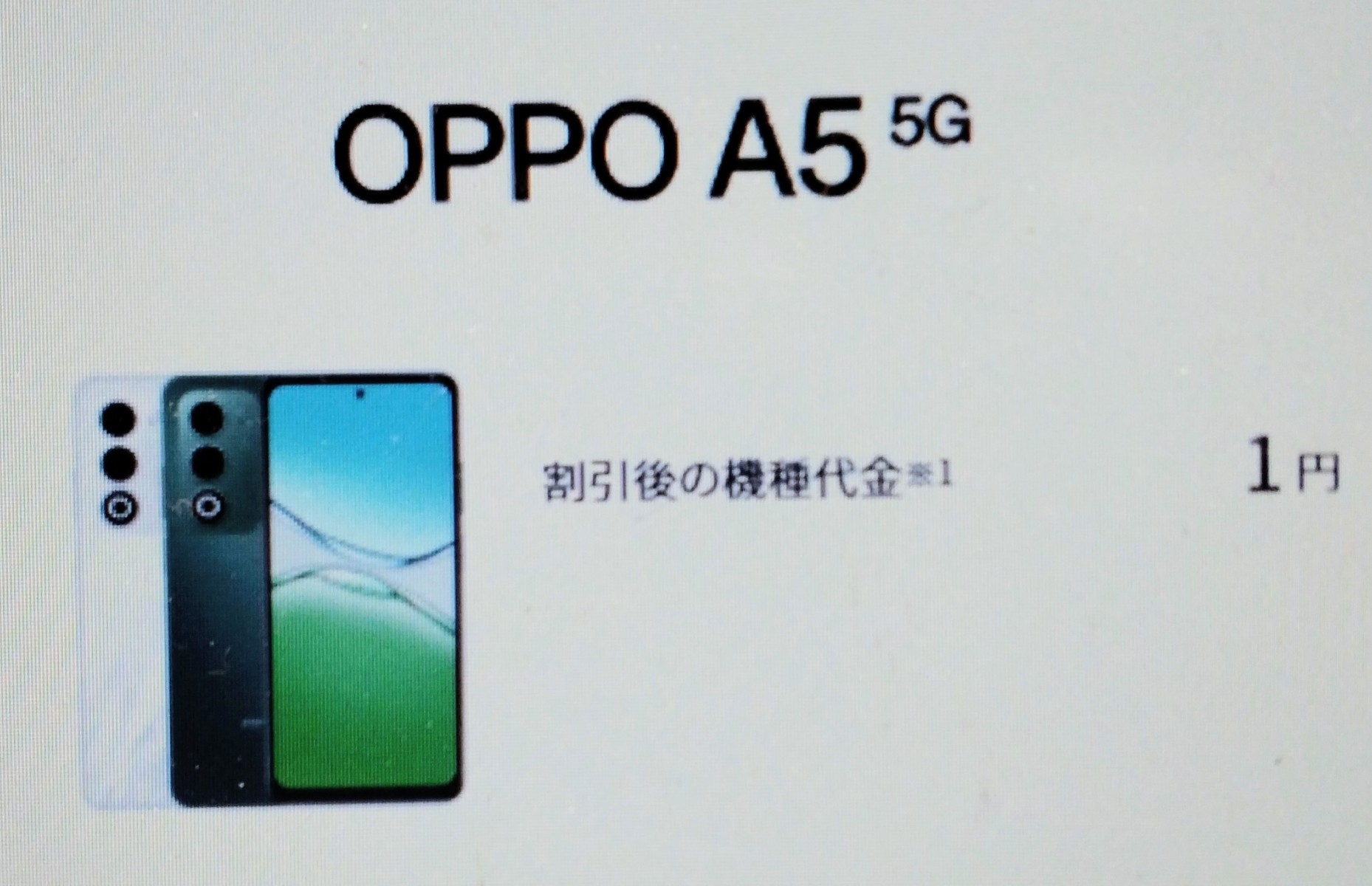 ワイモバイルでは、OPPO A3 5Gを他社から乗り換えの方ならシンプル3 M/Lに加入で1円で購入できます。詳しいスペックがこちらです。