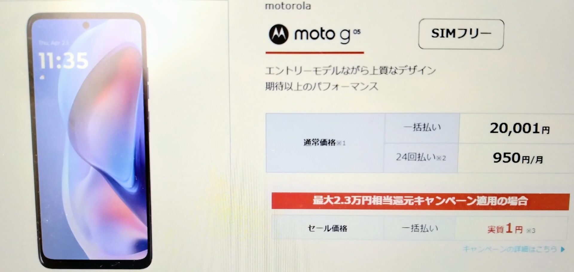 ワイモバイルでは、moto g66y 5Gが他社から乗り換えの方なら、シンプル3 M/Lに加入で1円で購入できます。