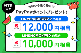 | LINEMOベストプランV:12,000pt LINEMOベストプラン:10,000pt