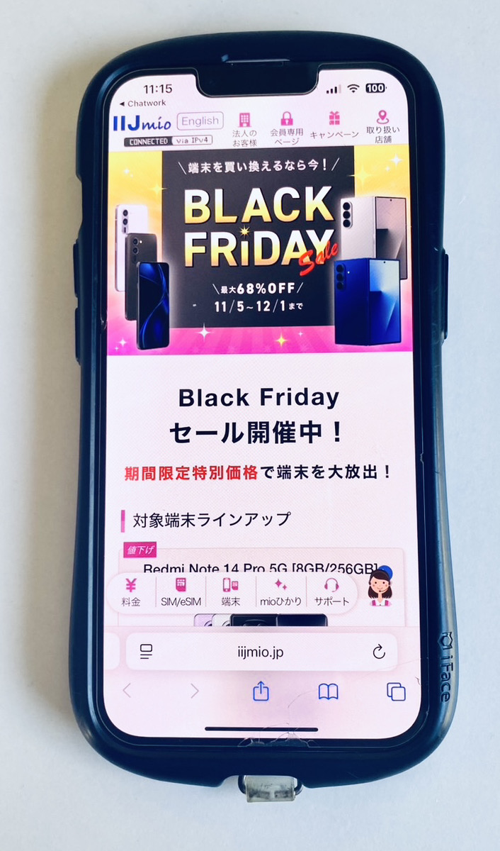 IIJmioでは、2025年12月1日までBlack Fridayセールを開催しています!端末を買い替えるなら今がチャンスです。