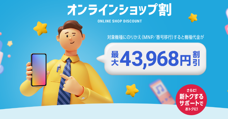 ![]() | オンライン限定! 対象機種に他社からの乗り換えで最大43,968円割引◎ |
