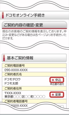 さらに「ご契約内容の確認・変更」を押します。ご契約情報が表示されます。