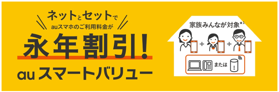 auスマートバリューとは、auスマホと自宅のインターネットをセットで使うと月々の料金が割引されるサービスです。