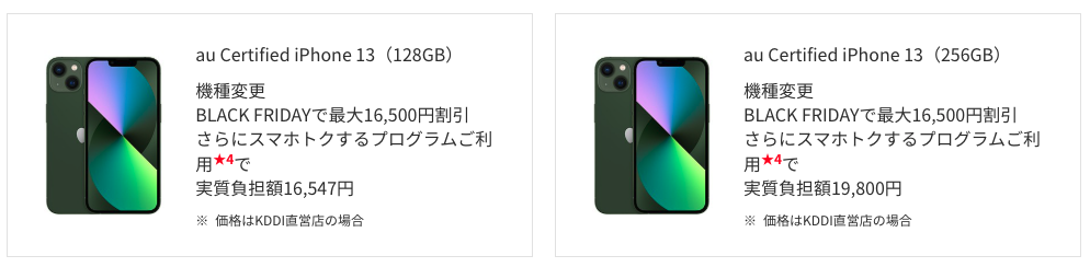 au Online Shop お得割+スマホトクするプログラム+他社から乗り換え:実質負担金 13,200円