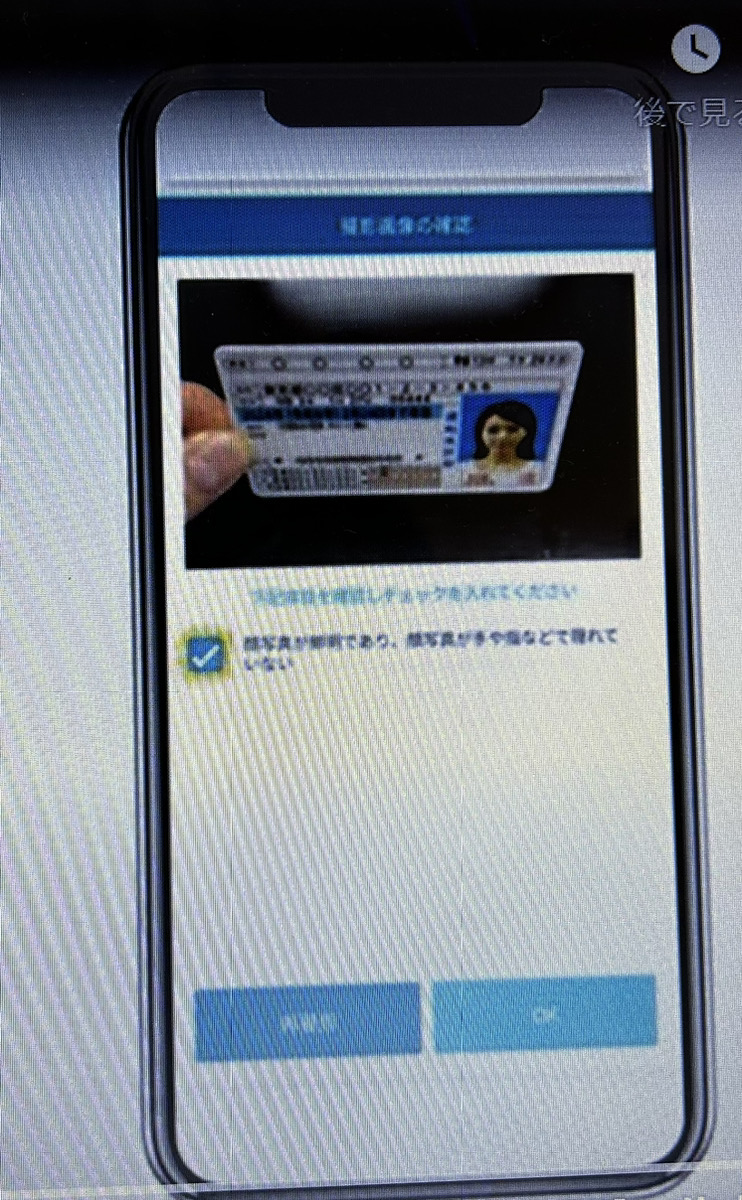 本人確認書類を立てるようにして、斜め上から撮影しなくてはいけないのですが想像しているより難しく感じてしまいます。