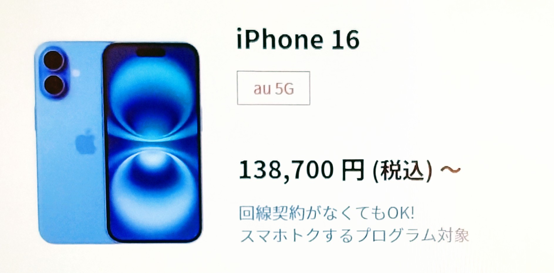 auでは一括0円の無料でiPhone・Androidスマホに機種変更をすることはできません。