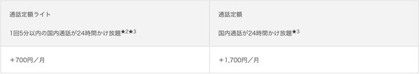 「通話定額」は、+1,870円/月で国内通話が24時間かけ放題です。