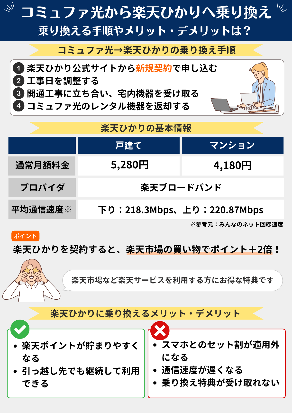 - コミュファ光から楽天ひかりへ乗り換えるメリット・デメリット