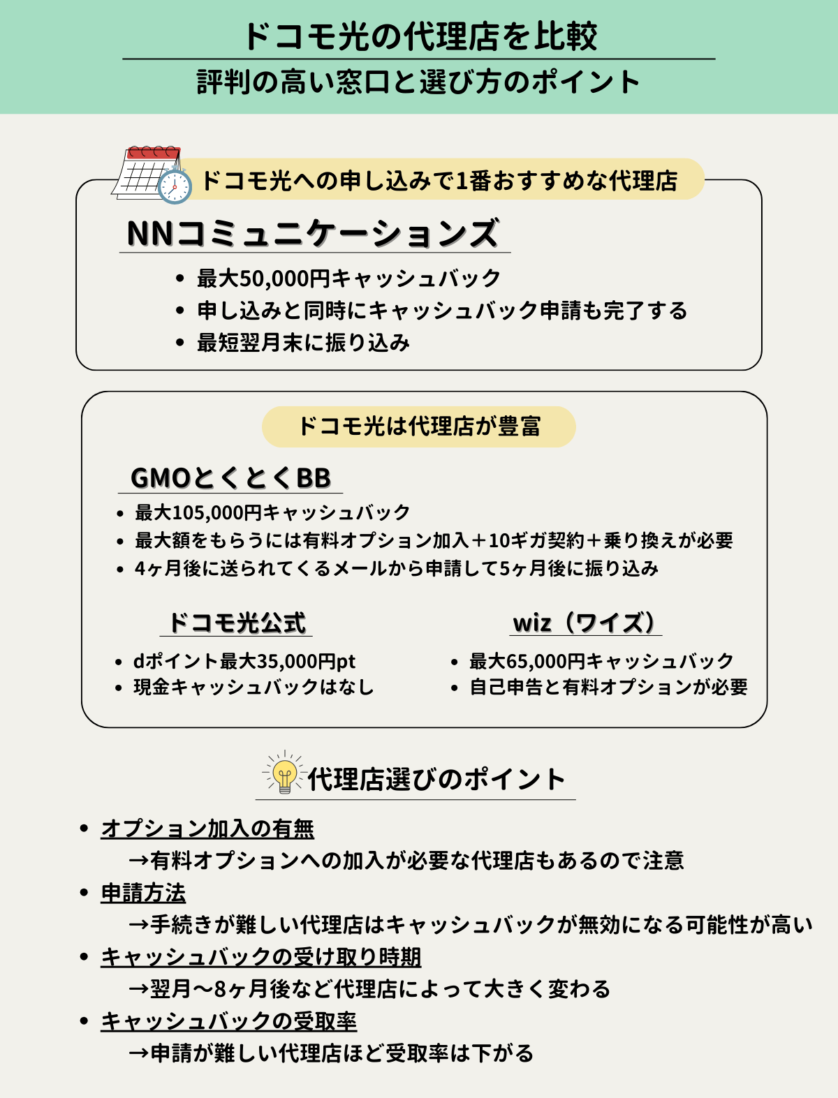 参考までに、ドコモ光の代理店を選ぶポイントをまとめてみました!