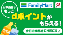 ![]() | ファミリーマートで対象商品を購入するといつもより多めのdポイントがもらえる◎ |