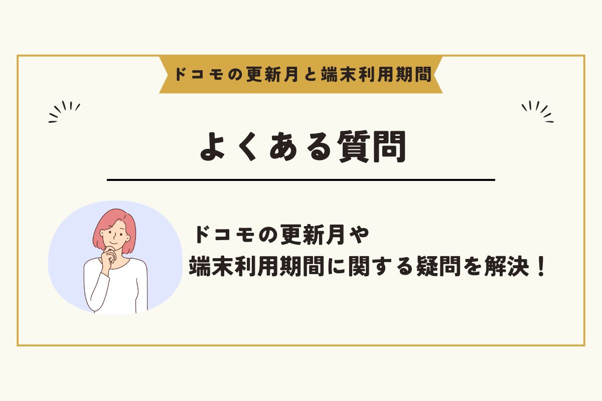 最後に、ドコモの更新月や端末利用期間に関して、よくある質問と回答をまとめました。