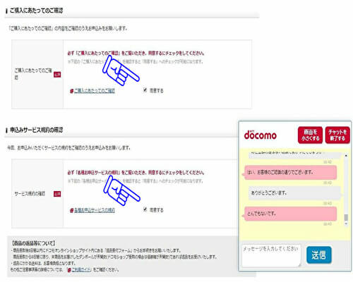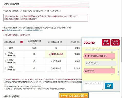 ドコモのチャットサービスは、対応が早いので機種変更手続きをしながらその都度質問できます。また、ドコモオンラインショップでの注文が完了するまで、同じ担当の方がサポートしてくれるので、店頭での手続きとほとんど変わらないやり取りができるでしょう。