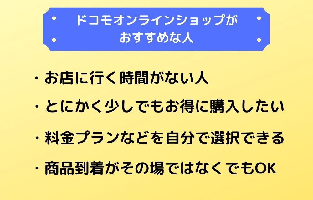どうしてもドコモオンラインショップを利用したいのであれば、家電量販店などであらかじめほしい端末をチェックしてみたり、口コミなどから端末の使い心地を確認しておくといいでしょう。