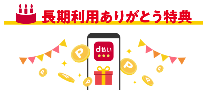 新しくドコモが行っているのは長期利用ありがとう特典です。こちらは、ユーザーの誕生日月利用したd払いが、ランクとドコモ回線継続利用期間に応じて還元率アップするサービス。