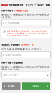 次に、MNPお手続きの選択欄でお好きなほうにチェックを入れます。