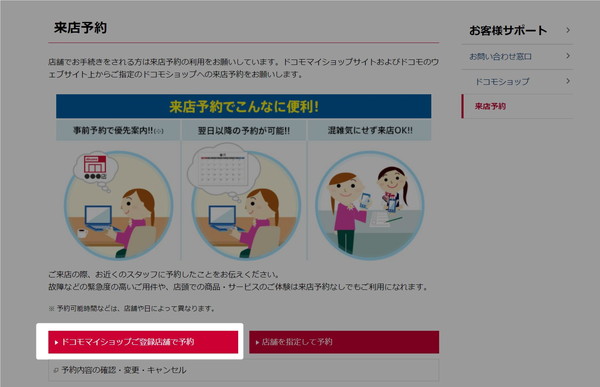 上記の手続きについては、ドコモショップへの来店が必要となりますので、事前の来店予約をして手続きしましょう。