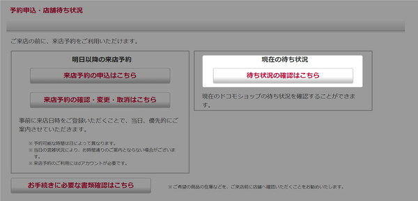 • ドコモマイショップで当日のリアルタイムの待ち時間を確認