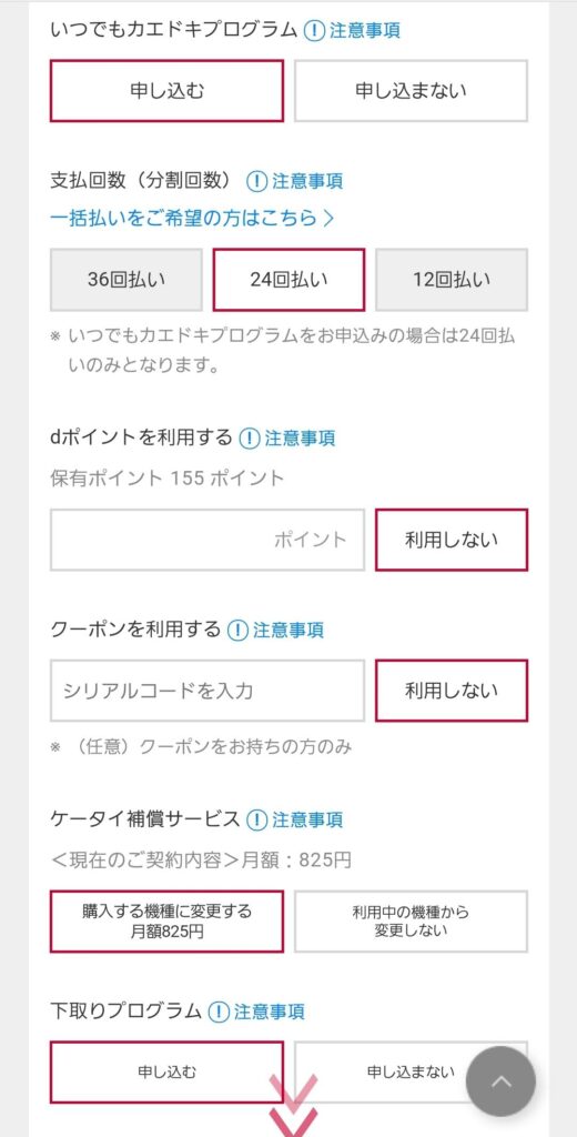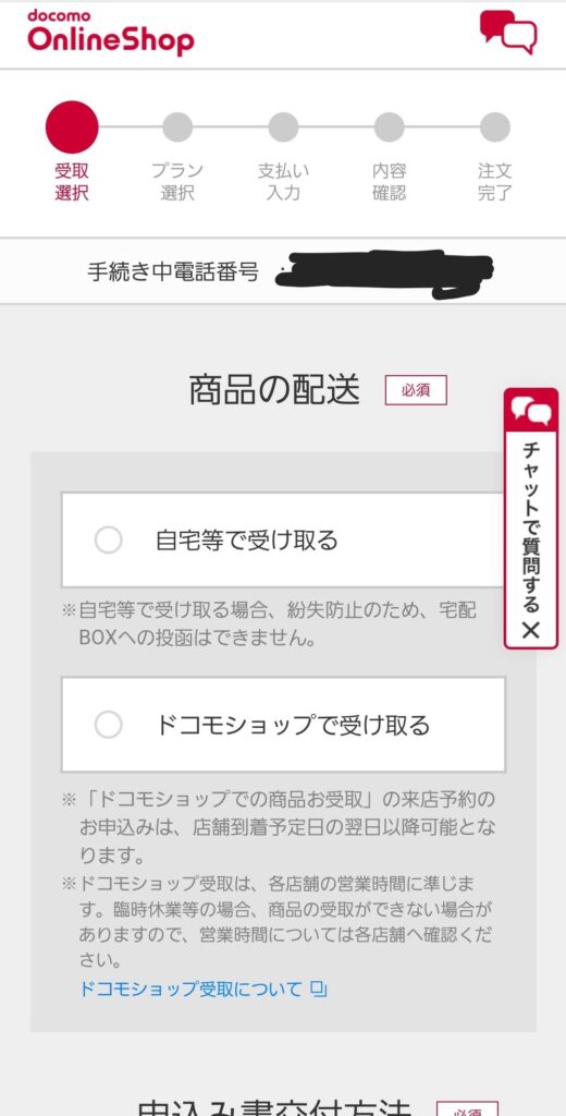• 商品の配送方法の選択(自宅・ドコモショップ)