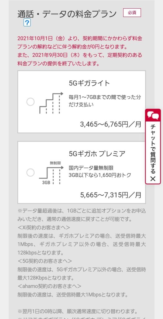 情報の選択・入力が終わると、次は料金プランとサービスの選択に移ります。
