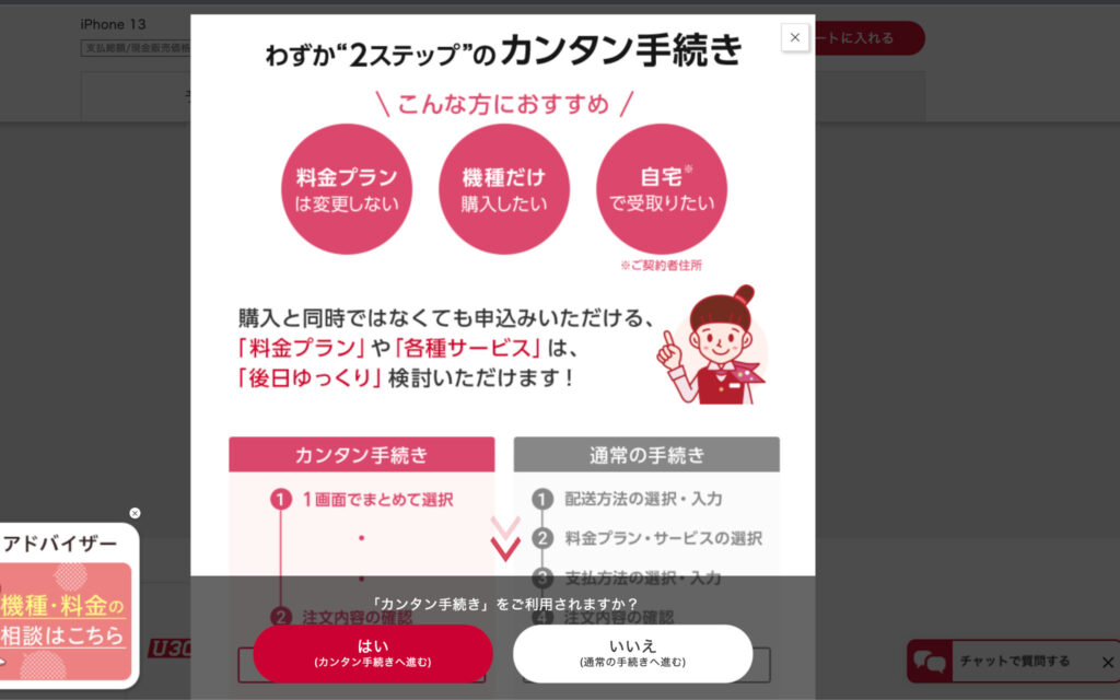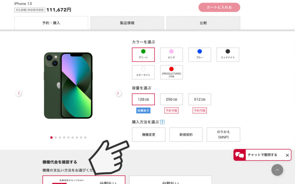 • 割引サービスの適用(iPhone 13はいつでもカエドキプログラム)