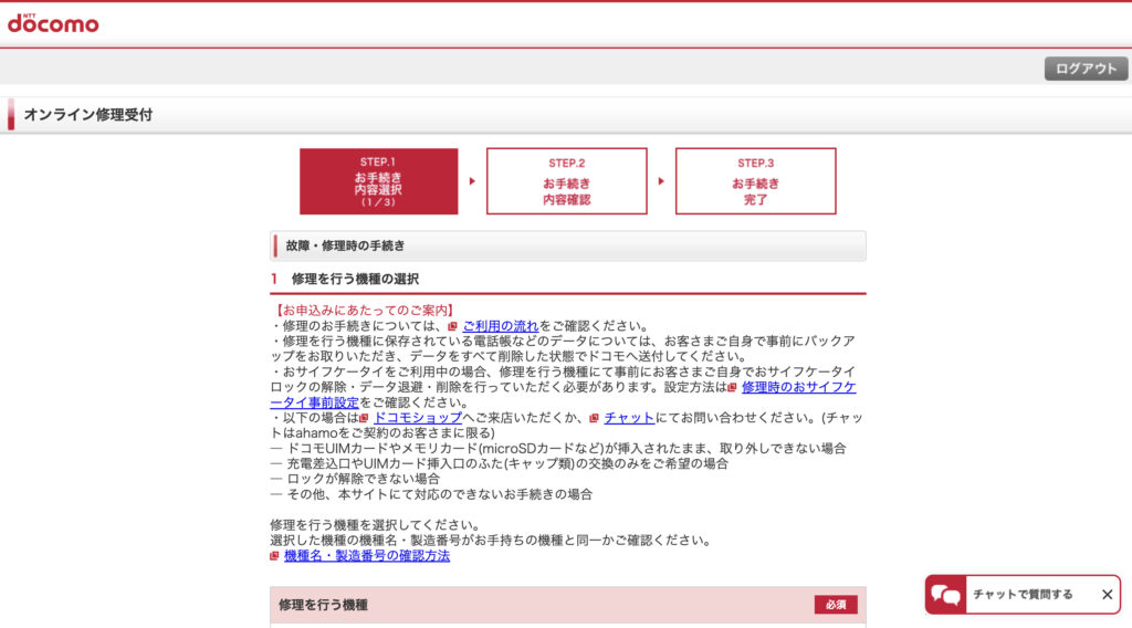 ドコモのオンラインで修理や交換を行う場合、利用中の機種によって方法は変わります。