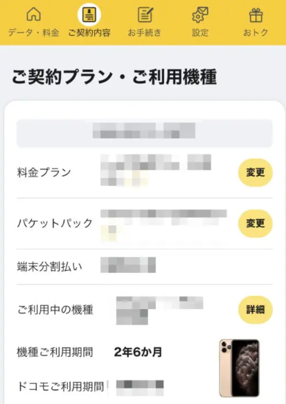 - 3端末目:iPhone→機種変更不可