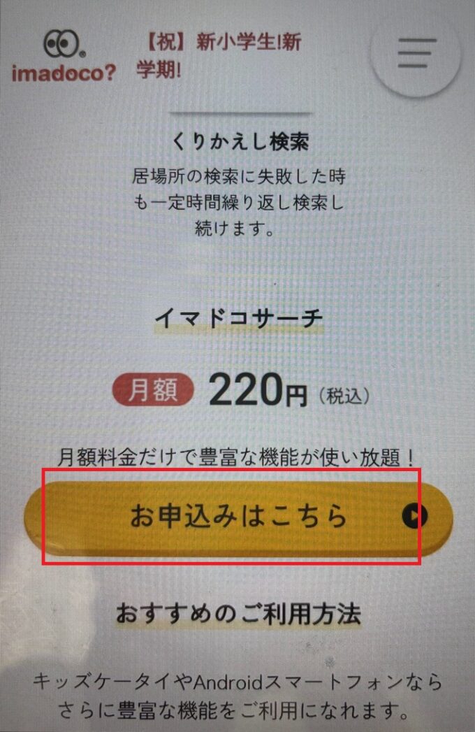 イマドコサーチの利用料は月額220円(初回31日間無料)
