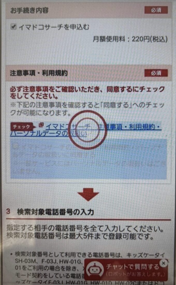 - お手続き内容で「イマドコサーチを解約する」にチェックが入っているか確認する