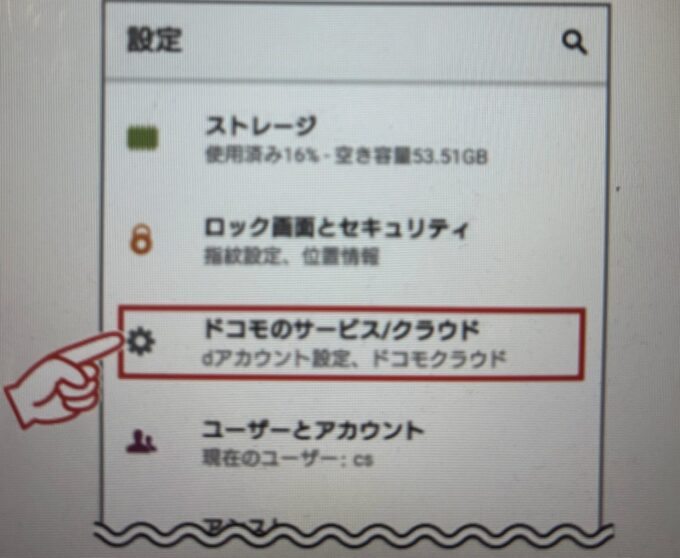 - 設定から「ドコモのサービス/クラウド」をタップする