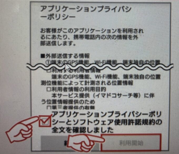 - 表示内容を確認し、「利用開始」をタップする