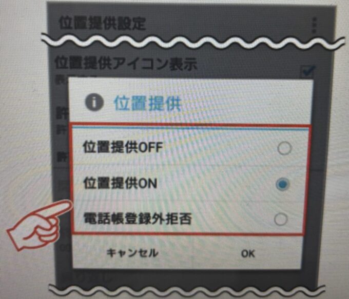 ただし、勝手に位置情報を検索されたくない場合は、探されるときの設定を「毎回確認」または「拒否」に変えましょう。