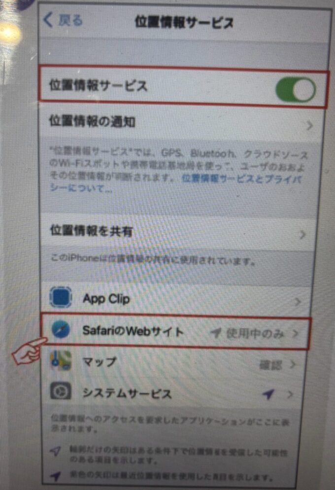 - 「位置情報利用設定」をタップする
