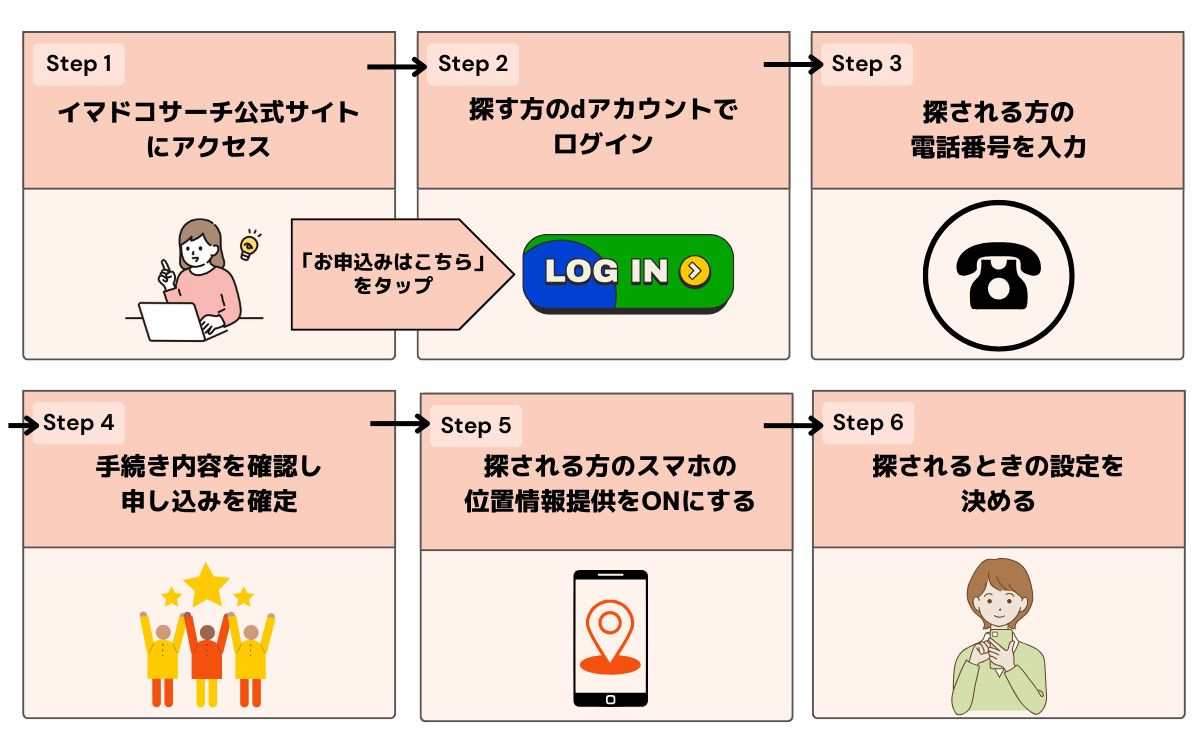 イマドコサーチはドコモユーザー以外も利用できますが、探される側はドコモで料金プランの契約が必要です。ドコモminiやahamo、irumoなど、お子さんや高齢者の家族に合ったプランを契約し、イマドコサーチを申し込みましょう。