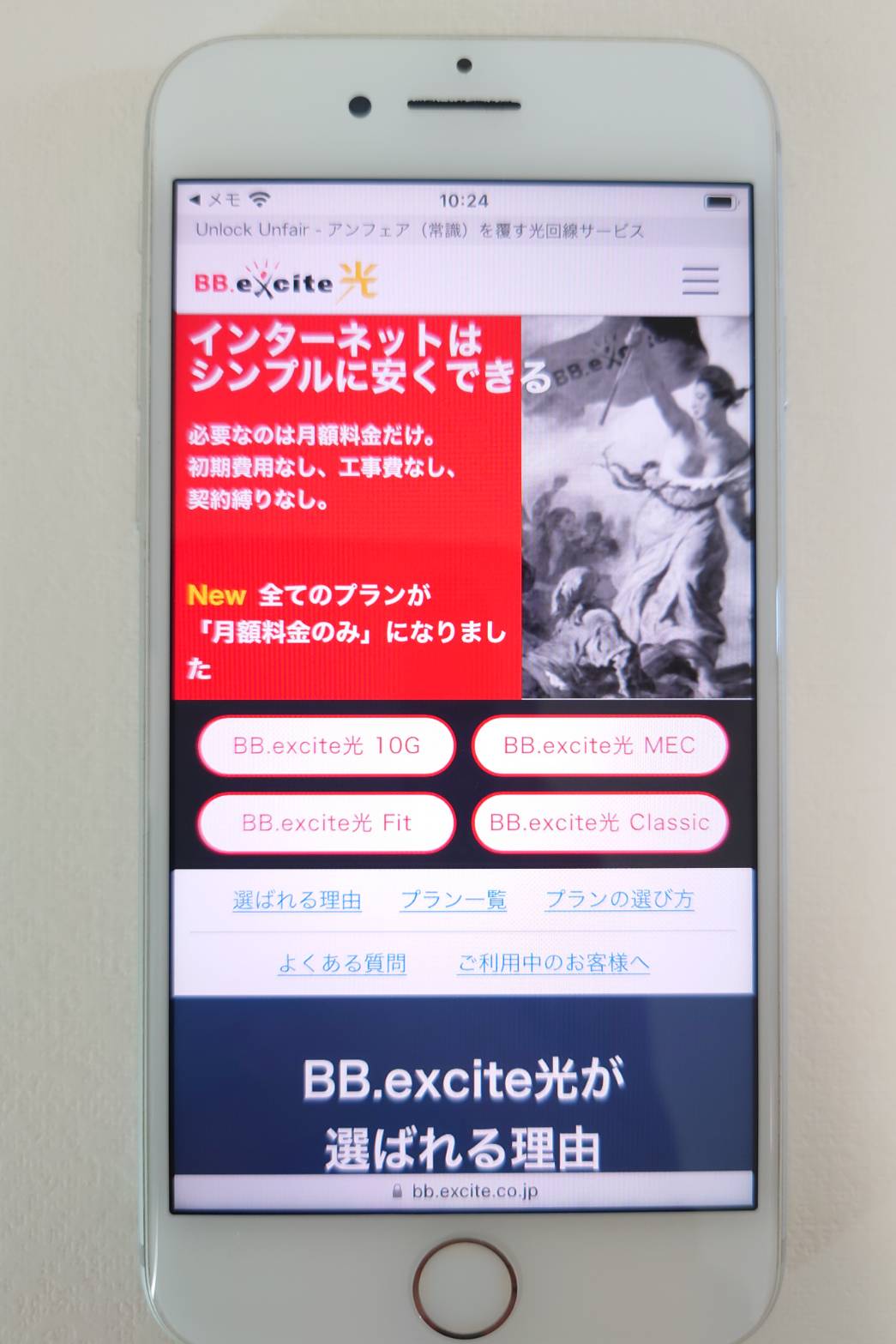 価格抑えるためエキサイト光にした。月々3696円。