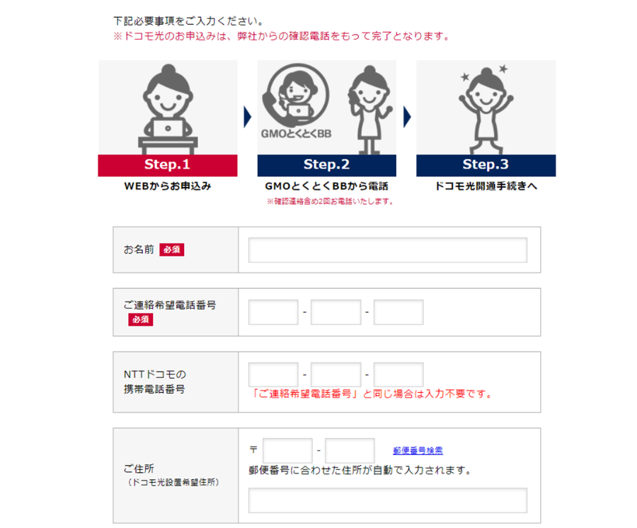 また、キャッシュバック申請はドコモ光の契約の流れの中で申請できるため、どんなに忙しい方や忘れっぽい方でも確実に申請できます。