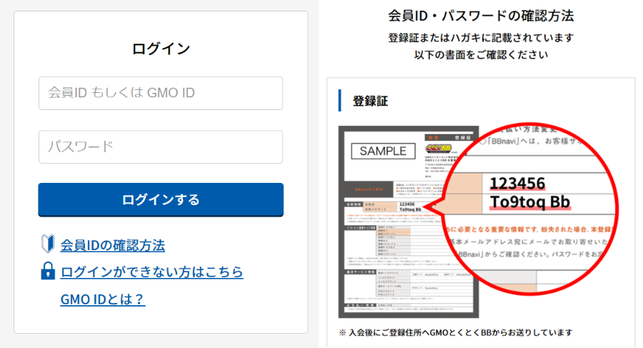 - 郵送で届く「案内メールのログイン方法」を確認