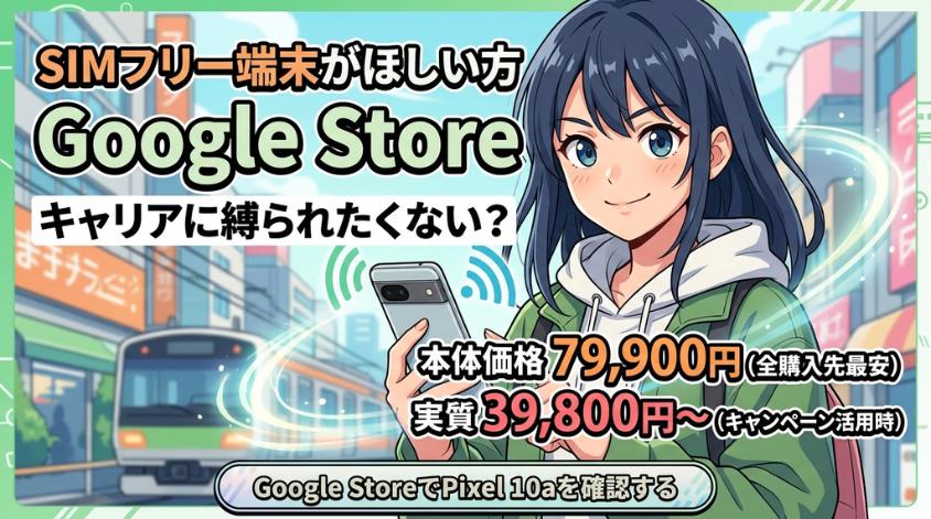 Google Pixel 10aを安く買う方法について、全キャリア・Google Storeの価格とキャンペーンを比較しました。