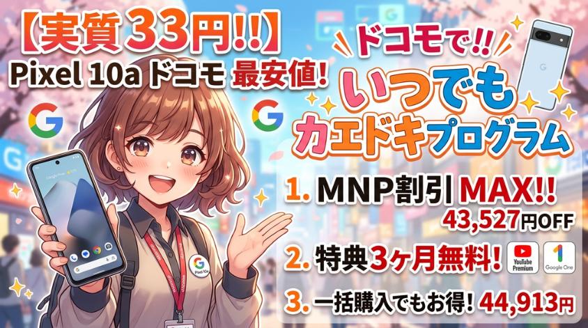 「Google Pixel 10aを安く買う方法が知りたい」「どこで買うのが一番お得なの?」「キャンペーンや割引情報をまとめて比較したい」