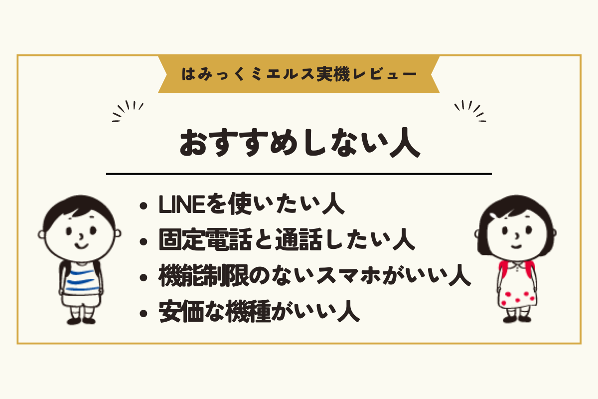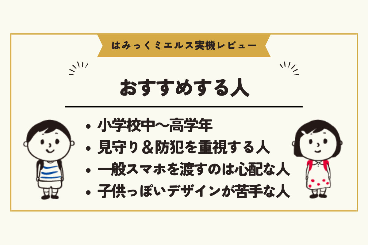 これまでの特徴を踏まえ、はみっくミエルスは以下のような方におすすめのキッズスマホです。