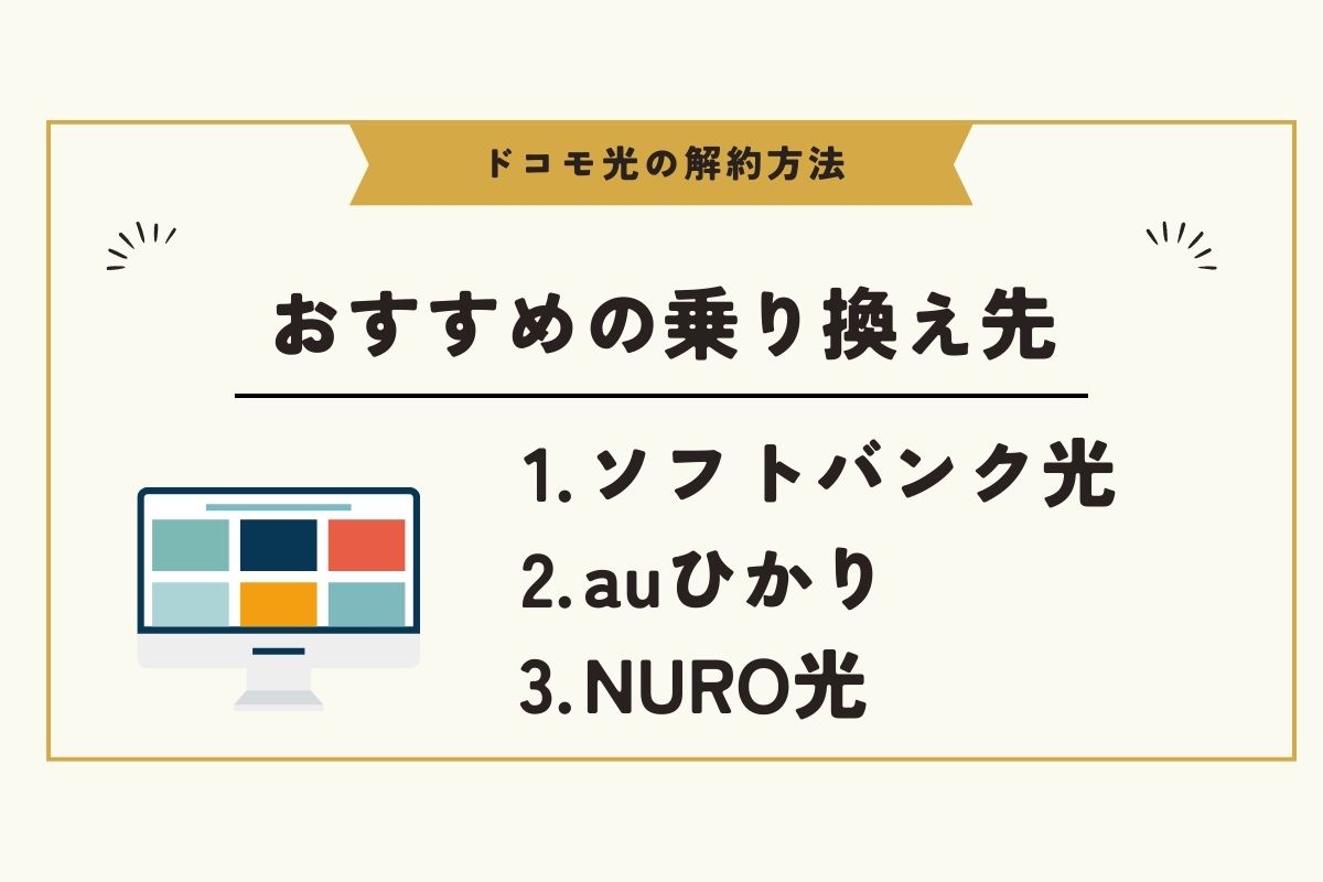 「ソフトバンク光」「auひかり」「NURO光」はいずれも乗り換え元(ドコモ光)の解約金負担キャンペーンやキャッシュバックキャンペーンを実施しているおすすめの光回線です。