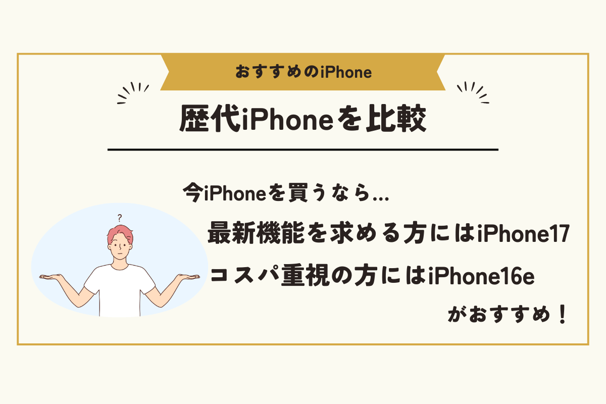 iPhone17が発売されたものの、「iPhoneは結局どれが一番おすすめなの?」「iPhoneを買うならどこが一番安い?」「コスパ最強のiPhoneはどれ?」など、どこでどのモデルを買えばいいのか分からない方は多いですよね。