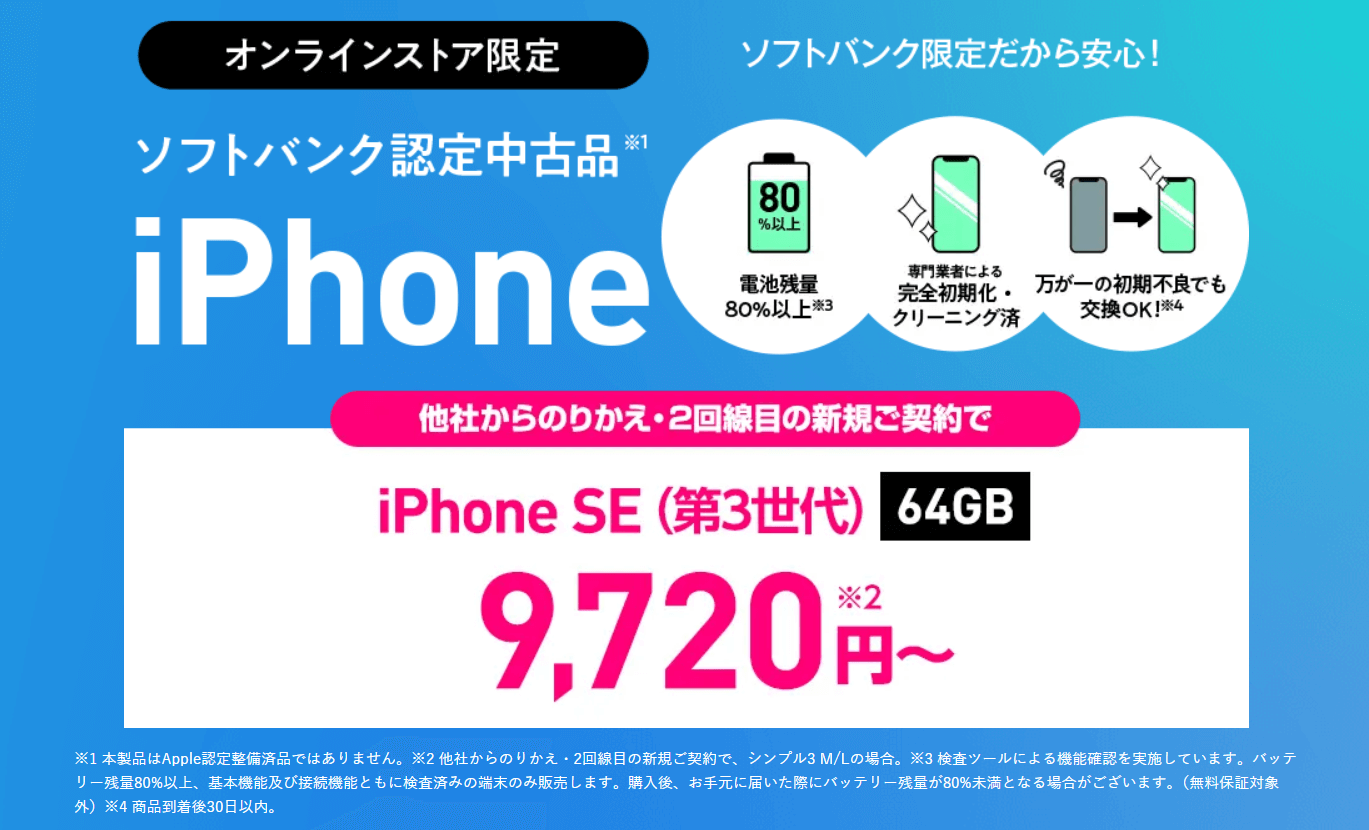 | ワイモバイル | 新規契約/MNP乗り換えの方限定 iPhone SE 第3世代(認定中古品)が9,720円~ |