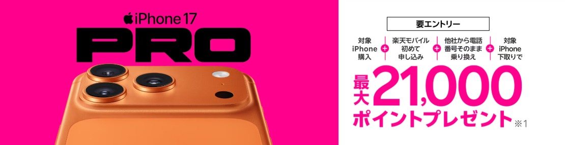 • iPhone17シリーズ購入で最大21,000円ポイント還元