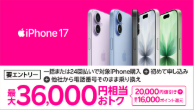 - 楽天モバイル| iPhone17購入キャンペーンで最大36,000円ポイント還元