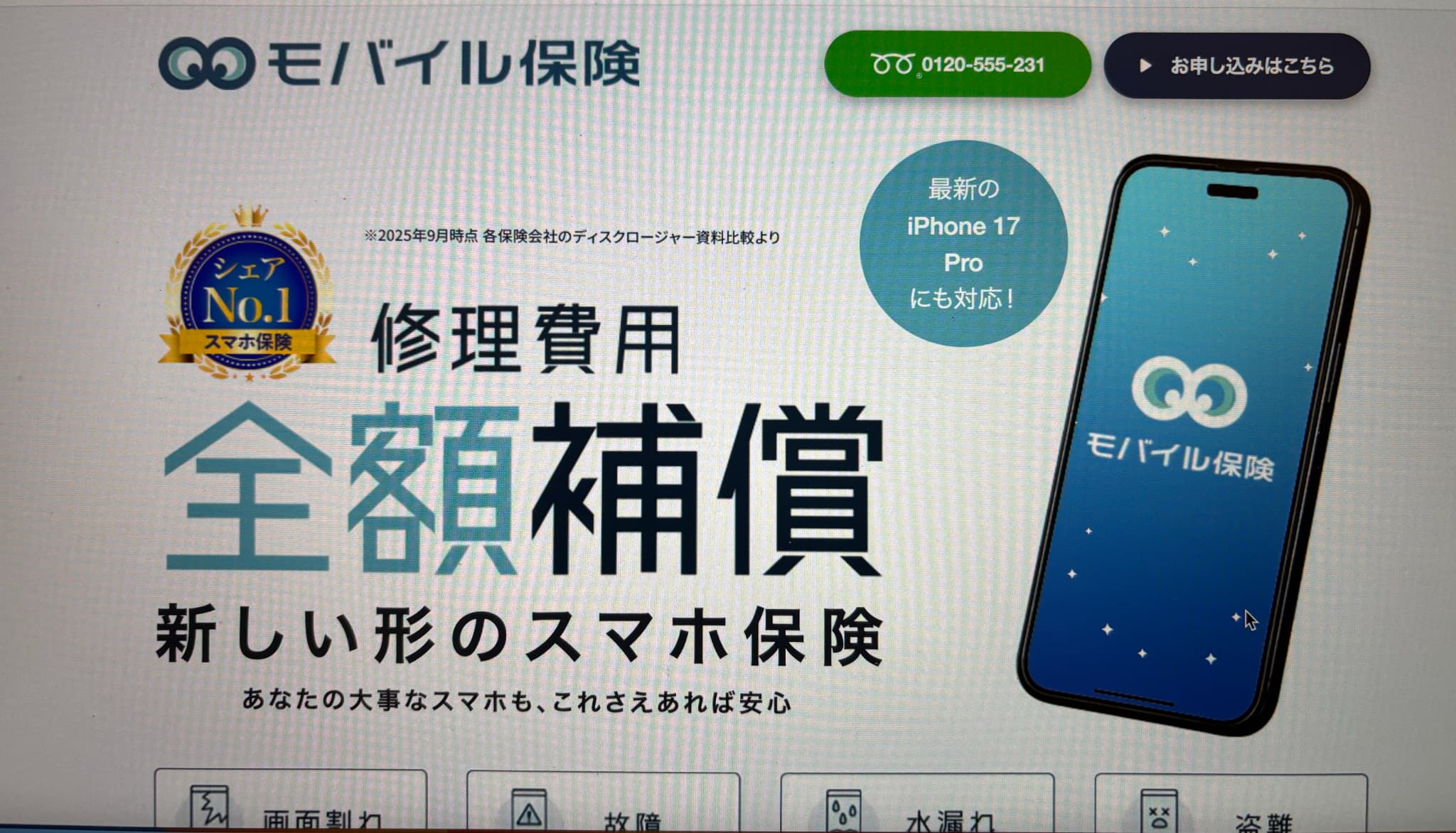 そんな中、人気を集めているのがモバイル保険(月額700円〜)です。落下・水没・故障などの修理費用を年間最大10万円まで補償でき、iPhoneだけでなくワイヤレスイヤホンやiPadなど3台まで登録可能。