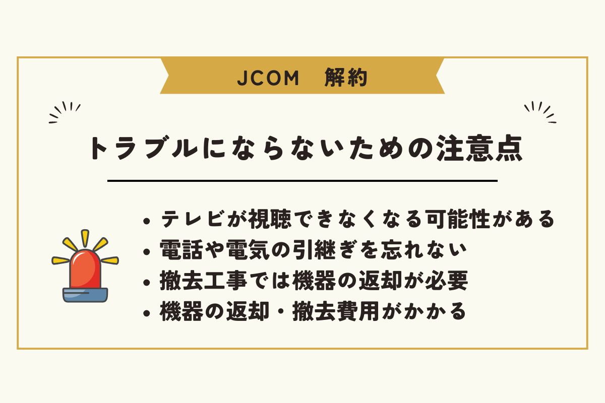 ここでは、J:COMの解約でトラブルにならないための注意点について紹介します。