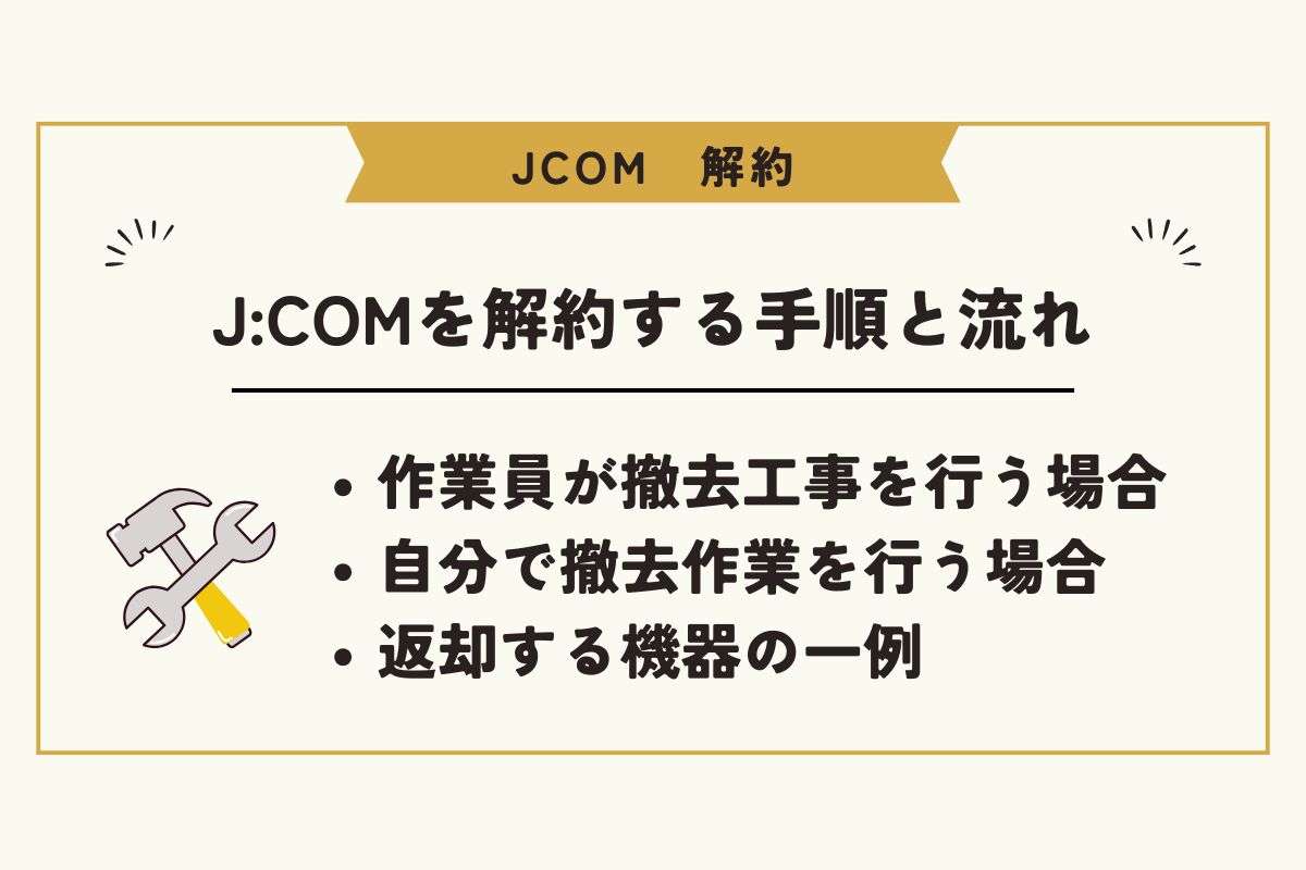 ここでは、J:COMを解約する際の流れについて詳しく紹介します。まずは、作業員が派遣されて撤去工事を行う場合の手順です。