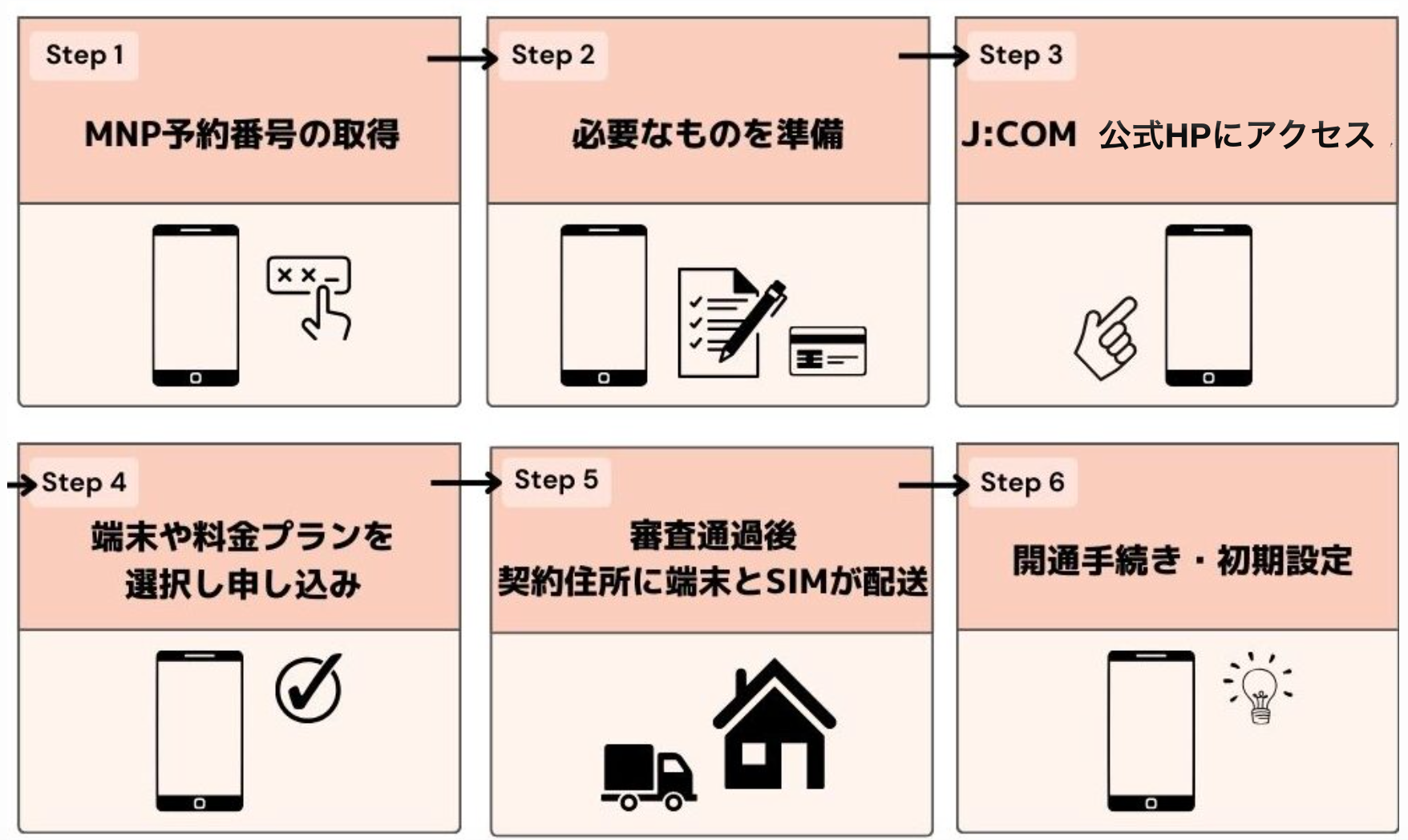 初めてで不安・よく分からないという方は、J:COM モバイルのお申し込みの流れを確認したり、以下の乗り換え手順を参考にして申し込みを行ってみてくださいね。