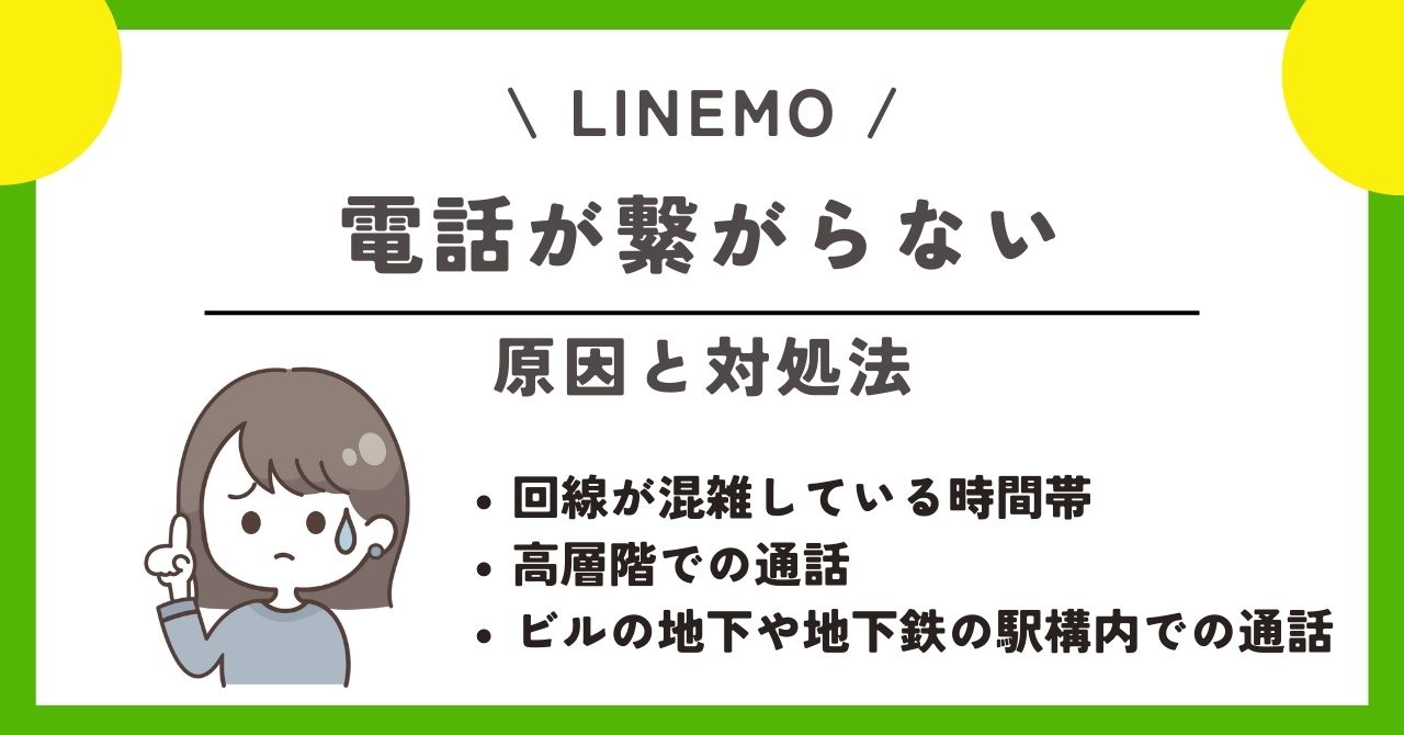 また、LINEMOの対応エリア内にいたとしても地下やトンネルの中など、一時的に繋がりにくくなってしまう場所もあります。