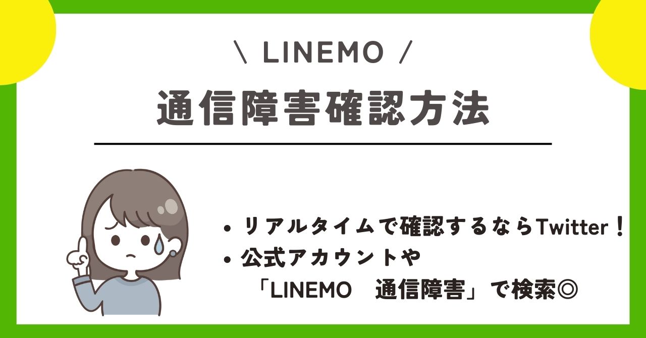 工事などの都合により、LINEMOが利用できない可能性があります。もし、LINEMOがどうしても繋がらない時は念のため通信障害が起こっていないか確認してみてくださいね。